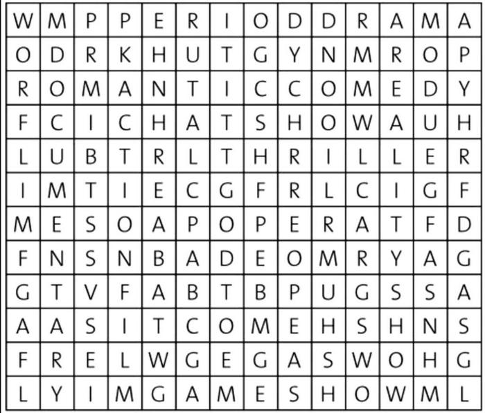 Куб слов представляет собой таблицу, в которой находятся буквы, образующие слова по горизонтали, вертикали и диагонали. В кубе слов можно найти разнообразные названия фильмов и телевизионных программ разных жанров.