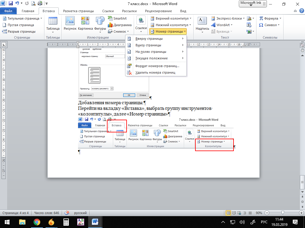 - пункт «Вставка» позволяет вставлять в документ различные элементы: иллюстрации, колонтитулы, символы, формулы и др.;