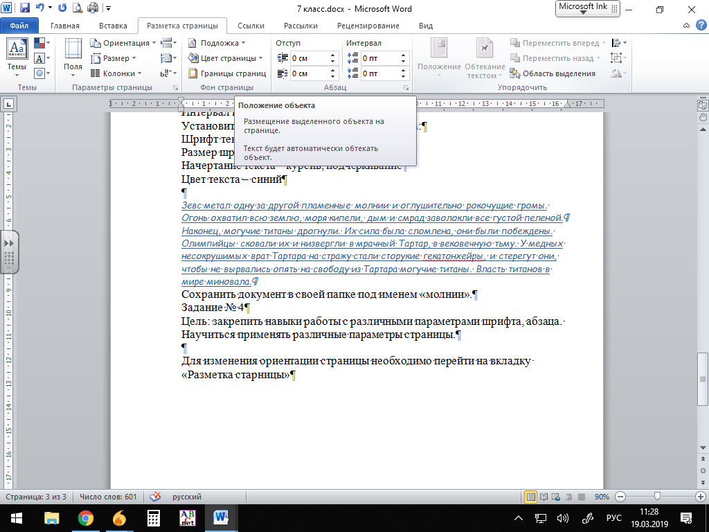 Тема: Создание документов в текстовом редакторе MS Word. Форматирование документа.