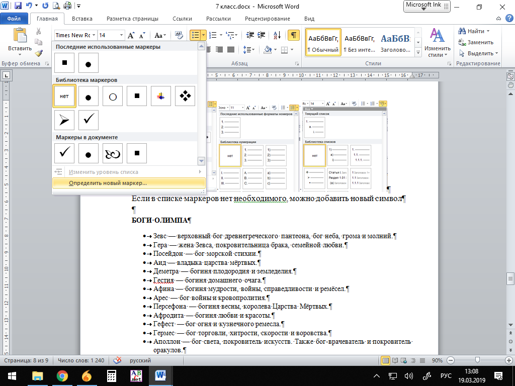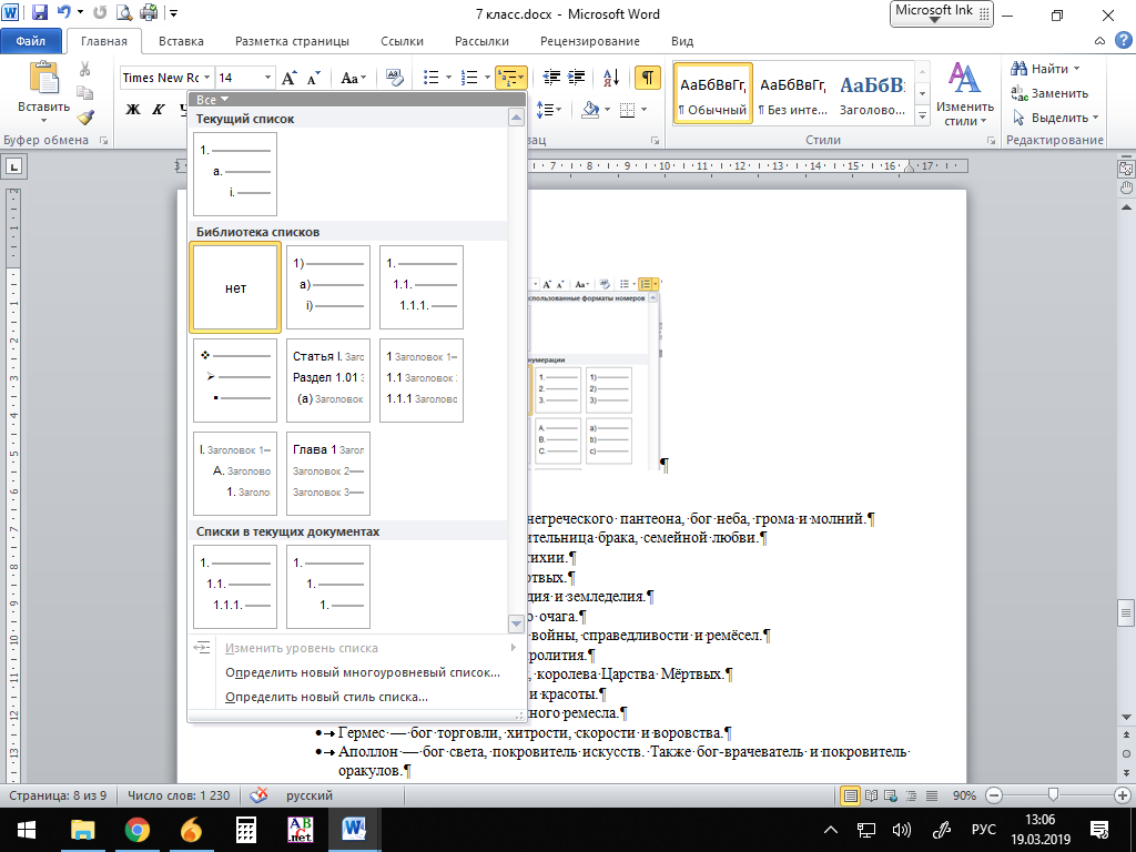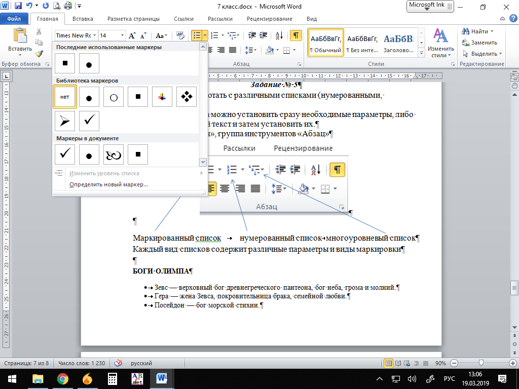 Маркированный список нумерованный список многоуровневый список