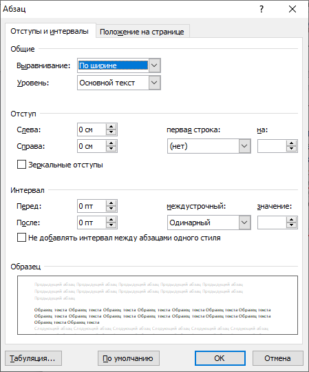 Установите параметра абзаца.
