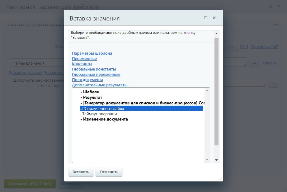 Г). В активити «Изменение документа» (Рисунок 13) необходимо сохранить сгенерированный файл в поле документа (Рисунок 14).