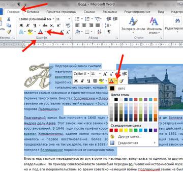word как изменить цвет и фон текста