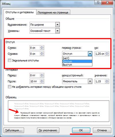 Изменение отступа в абзаце