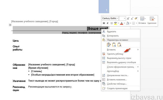 Если колонтитул был создан в виде таблицы, удалите его данные следующим образом: