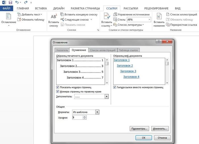 Оглавление в программе Microsoft Word