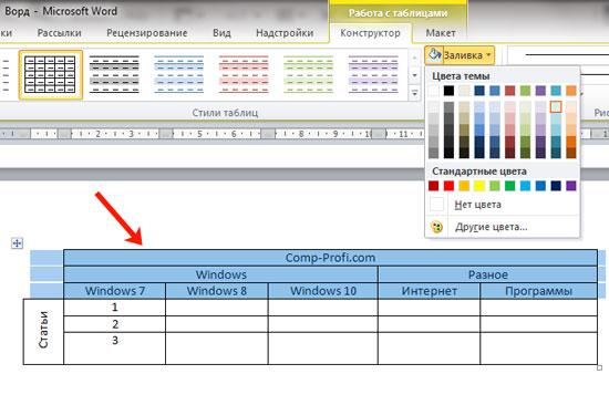 Как изменить цвет ячейки в таблице в Microsoft Word