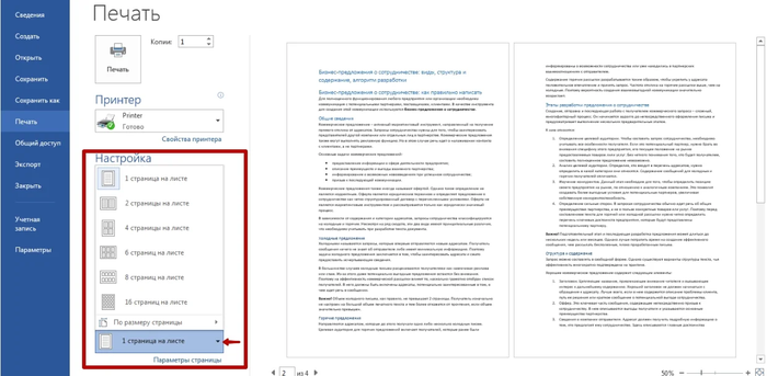 1. Использование функции «две страницы на одном листе»