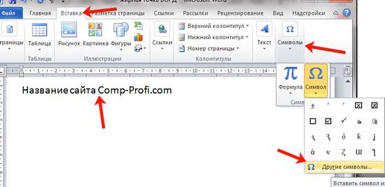 Для того чтобы воспользоваться функцией «Вставить символ» в Word, необходимо выполнить следующие шаги: