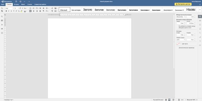 После выбора типа или шаблона документа, вы попадаете на страницу редактирования. Здесь вы можете начать вводить текст, добавлять заголовки, форматировать абзацы, вставлять изображения и многое другое.