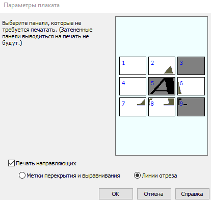 Неудобно только, что в этом режиме не видна сама картинка и непонятно какие именно панели могут оказаться пустыми. - Можно также задать печать направляющих, что особенно актуально, если листов будет много: Линии отреза — изображение на каждой странице будет помещено в