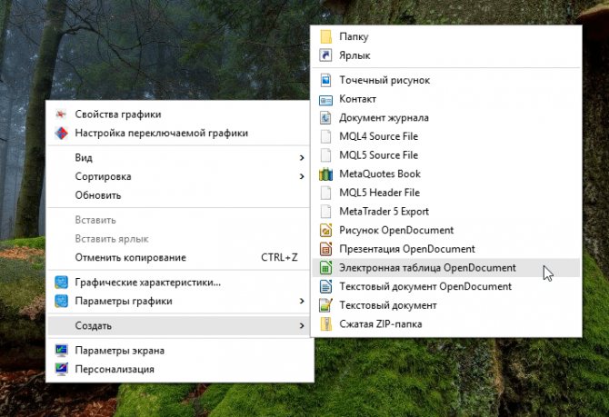 - Создаем на рабочем столе документ LibreOffice Calc (жмем правой кнопкой мышки по пустому месту и