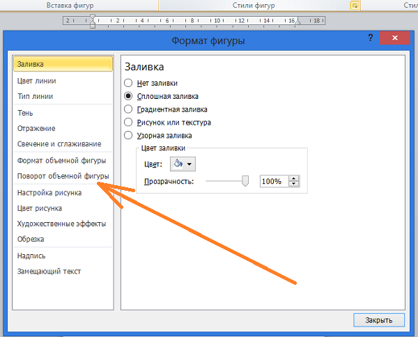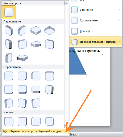 И в открывшемся перечне действий выбрать пункт «Поворот объёмной фигуры»: