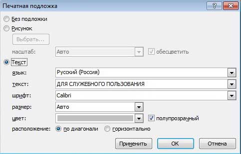 Вот так вот легко можно создавать оригинальные документы, фоновая надпись которых будет свидетельствовать о том, что это за документ: образец, черновик, а, быть может, он чрезвычайно срочный или же секретный.