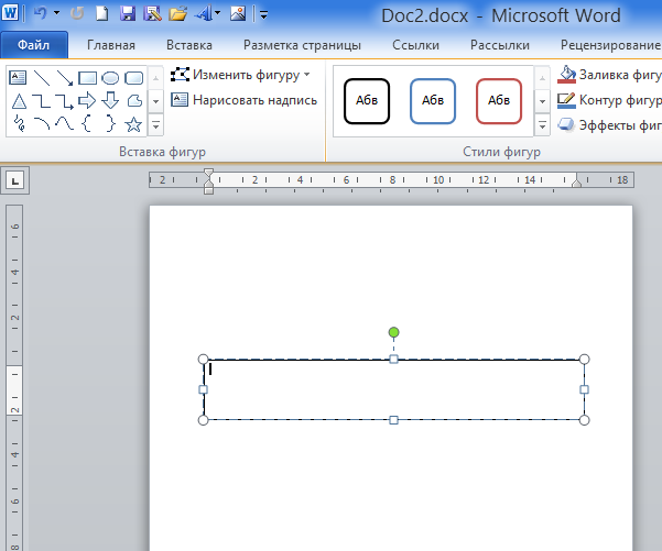 В тот момент, когда мы закончили рисовать поле для будущего текста и отпустили левую кнопку мыши, в верхнем меню произошли существенные изменения. Совершенно самостоятельно (автоматический режим) на смену опциям вкладки «Вставка» пришли другие опции другой вкладки «Формат»: