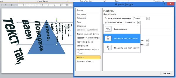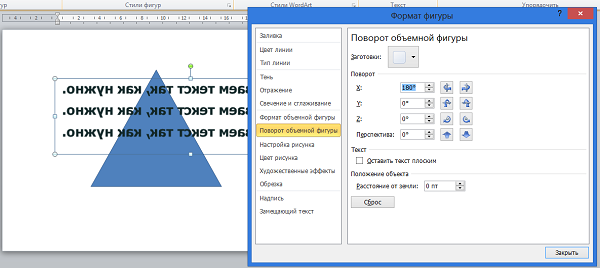 Как в Word написать текст под любым углом и задом наперед