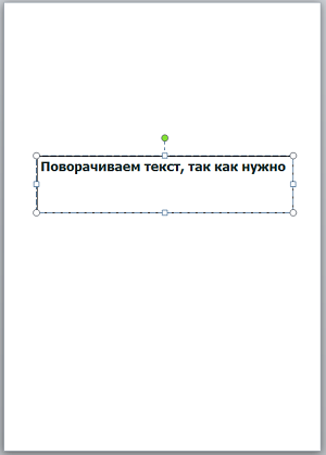 Прошлый раз, когда мы говорили о «вертикальном тексте», то поворот текста осуществляли, схватившись за верхний зелёного цвета маркер. Сегодня же мы будем действовать иначе. Я добавлю в поле ещё две строки текста в качестве примера.