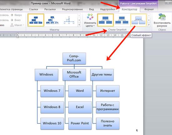 Чтобы вставить SmartArt графику в Word, выполните следующие шаги: