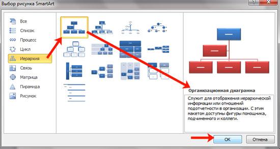 - Щелкните «ОК» для вставки выбранной иерархической схемы.