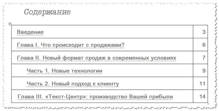 После создания оглавление следует переместить перед таблицей. Для этого: