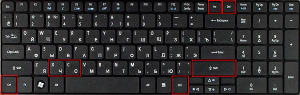 Использование комбинации клавиш: