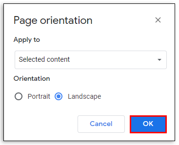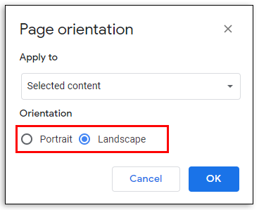 Как сделать альбомную ориентацию всего на одну страницу в Google Docs
