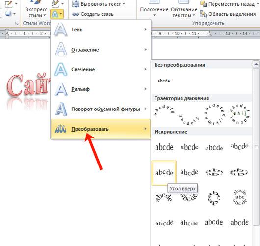 Создание фигурного текста в Word