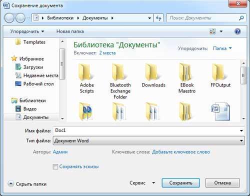 Рис. 3 Подробная технология сохранения документа изложена на страничке Создание и сохранение документа в Word 2007