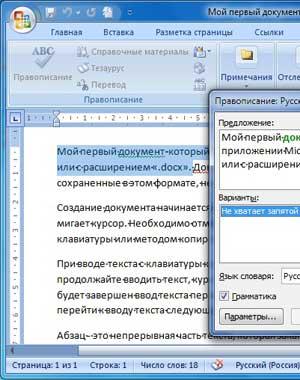 - проверка правописания;
