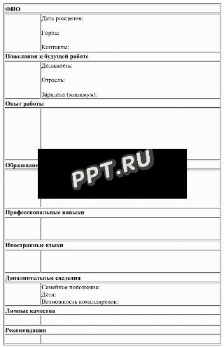 - Нет мотивации изучить требования конкретной компании к анкете претендента.