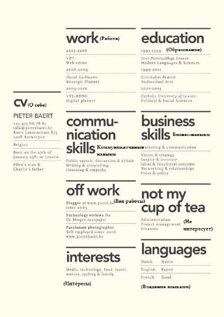 Но сейчас есть модный тренд — совмещать творчество и анкетные данные. Иными словами, художник оформляет бланк, копирайтер пишет продающий текст про самого себя, веб-дизайнер проектирует лендинг.