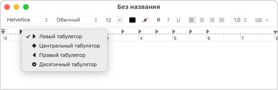 В программе TextEdit на Mac откройте меню «Формат» > «Текст» > «Отобразить линейку».