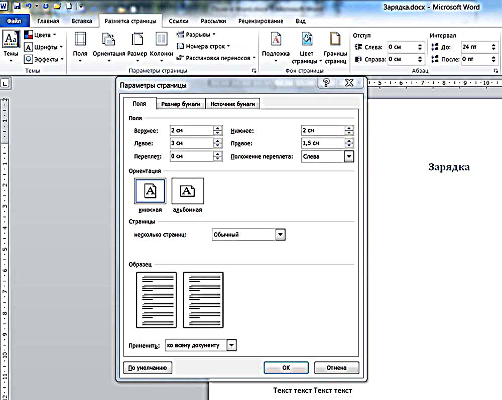 Стандартная разметка, которая подходит в большинстве случаев для оформления, это параметры, которые устанавливает Ворд по умолчанию: отступ для левого поля – 3 см, для правого – 1 см, для верхнего и для нижнего – 2 см.