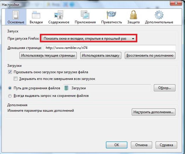 Во всплывшем меню будет несколько вкладок. Среди них найдите вкладку «Основные». В поле «Домашняя страница» введите адрес сайта, на который будете ходить чаще (поисковик, социальная сеть или другое).