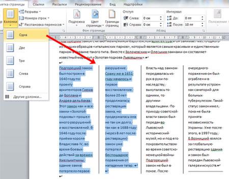 Основные принципы разделения текста на два столбика в Microsoft Word