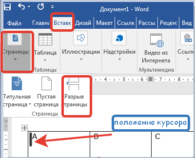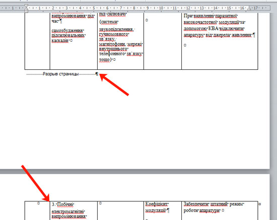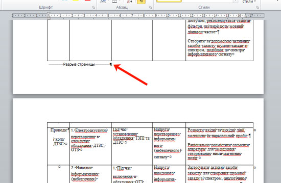 После этого, таблица разорвется на 2 части. Установите курсор после появившейся фразы там, где стоит вертикальная черная палка – конец абзаца, и напечатайте нужный текст.
