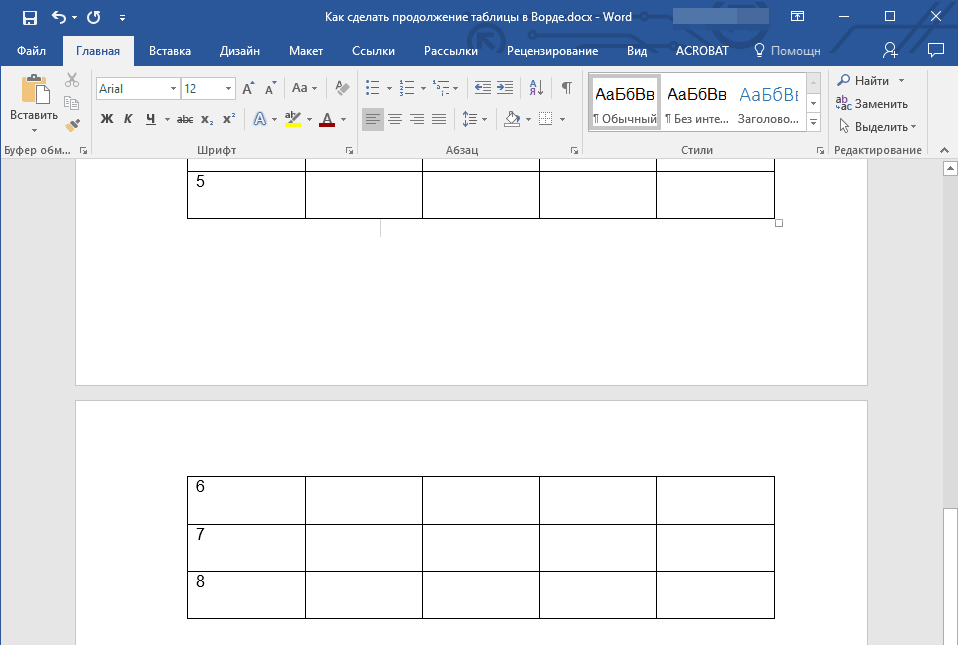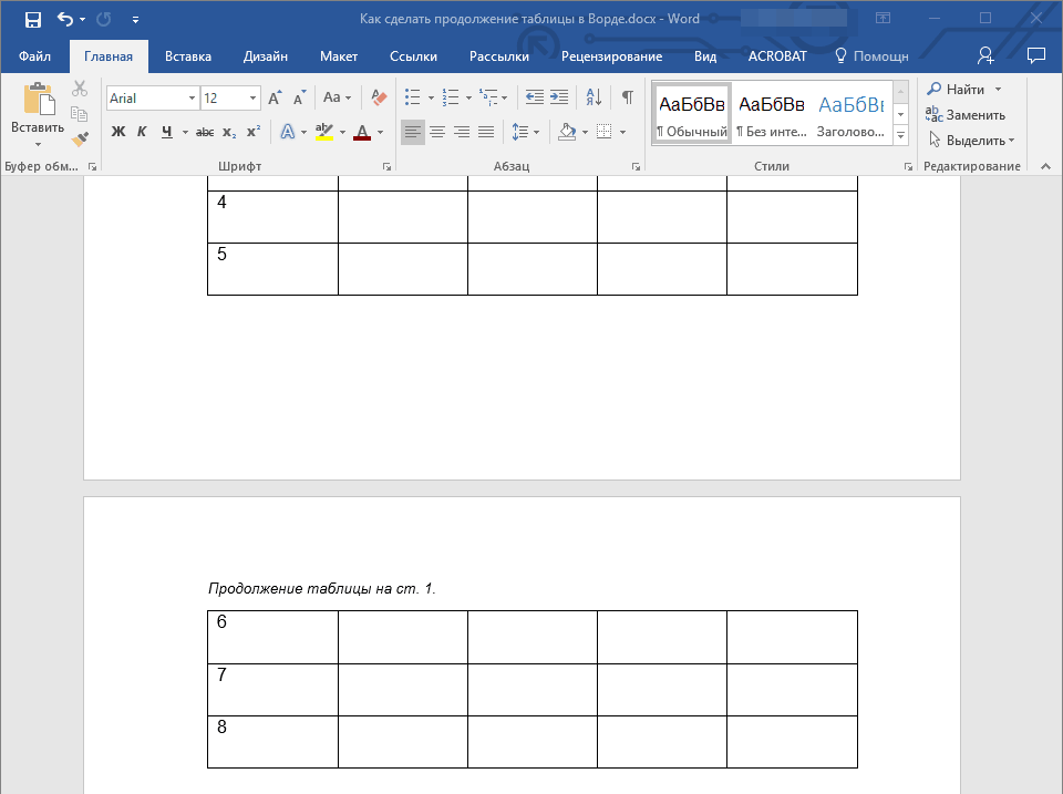 Надеюсь, у Вас все получилось, и теперь написать фразу Продолжение таблицы Вы сможете всего за пару минут.