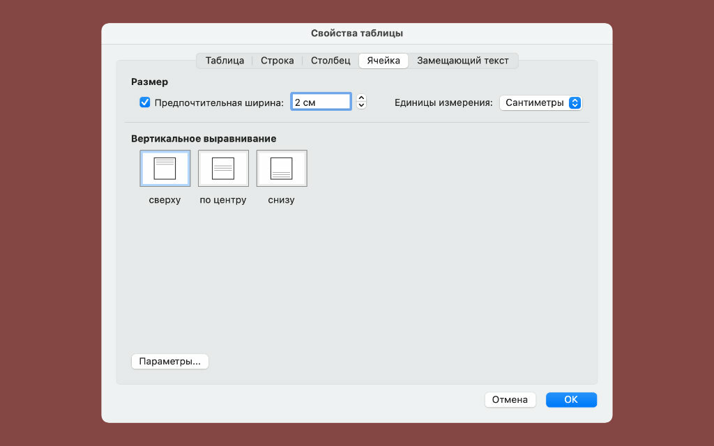 Шаг 3. Перейдите в раздел «Ячейка» и выберите ширину ячейки с помощью соответствующего поля, а потом подтвердите изменение свойств таблицы с помощью кнопки «ОК».