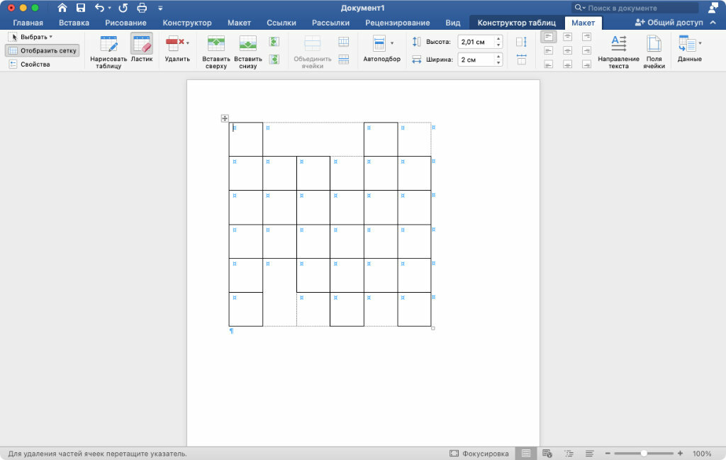 Шаг 1. Нажмите на таблицу, перейдите в раздел «Макет» в верхнем ленточном меню приложения и выберите возможность «Ластик».