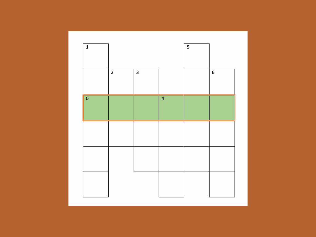 По задумке, которая используется в примере, нужно получить ключевое слово по горизонтали под номером «0», вписав в кроссворд все слова по вертикали под цифрами «1», «2», «3», «4», «5» и «6» согласно заданиям.