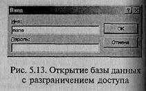 Наиболее простым средством защиты базы данных Microsoft Access от несанкционированного доступа является ее шифрование, при котором она сжимается и становится недоступной для просмотра и редактирования отличными от Microsoft Access программными средствами. Но если в зашифрованной базе данных не используется разграничение доступа на уровне ее пользователей, то любой из них сможет открыть такую базу данных и получить полный доступ ко всем ее объектам. Поэтому шифрование должно применяться вместе с разграничением доступа на уровне пользователей или с применением пароля доступа к базе данных либо в целях экономии памяти при сохранении базы данных на дискете или компакт-диске.