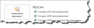 Чтобы увидеть, какие версии вашего файла существуют, надо войти в меню Файл, после чего в разделе Версии вы увидите нечто похожее: