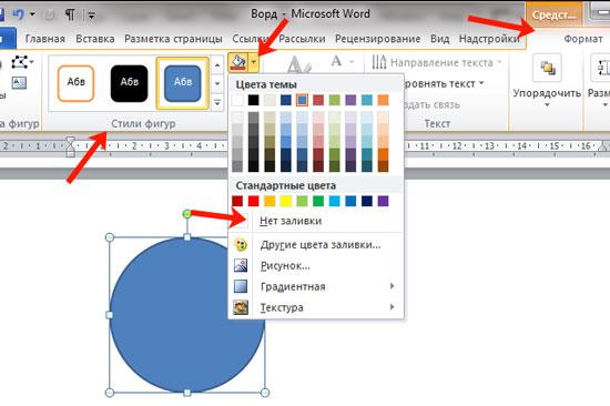 В Microsoft Word предоставляется широкий выбор цветов для заливки фигуры. Чтобы изменить цвет заливки, необходимо выполнить следующие действия: