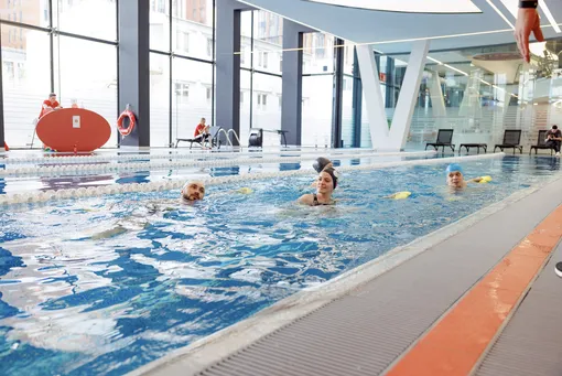 Аквакомплекс представлен 25-метровым бассейном на четыре дорожки, хаммамом и финской сауной. В меню водных программ как групповой аквафитнес, так и индивидуальный тренинг.