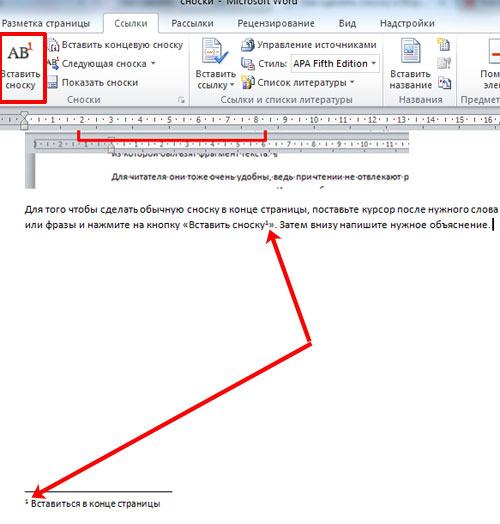 Как вставить сноску в документе Word?