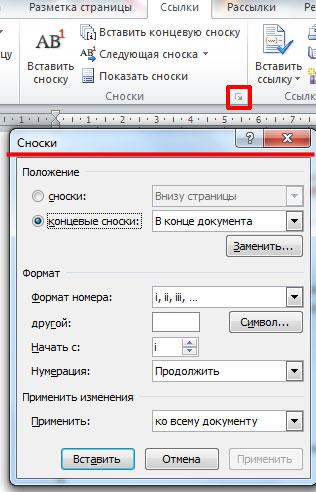 - В разделе «Сноски» нажмите на кнопку «Вставить сноску».