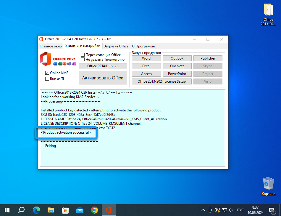 Активация Microsoft Office через интернет