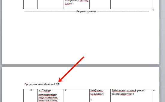 - Напишите «Продолжение таблицы» или любой другой текст.