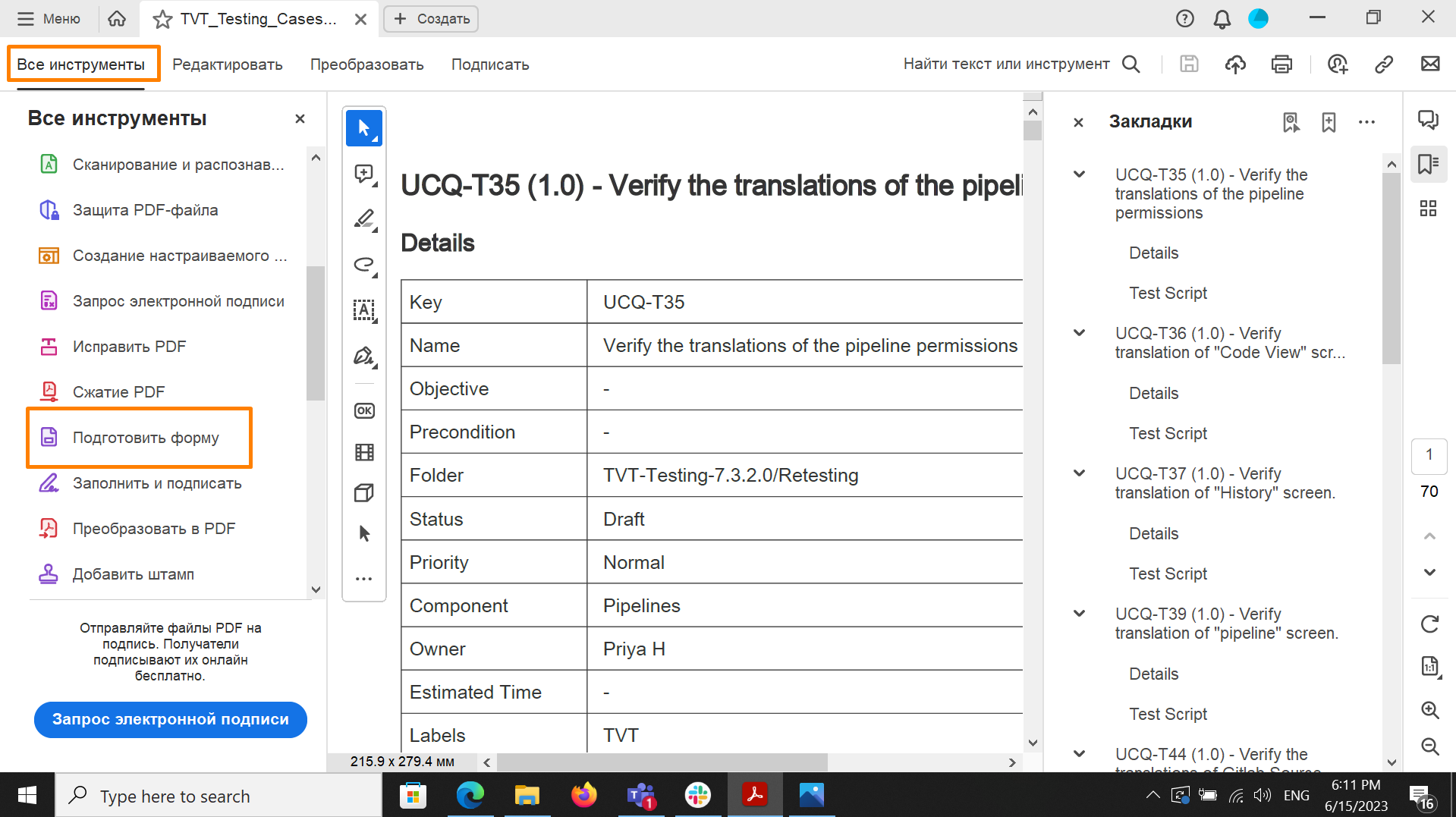 Если вы не находитесь в режиме редактирования форм, выберите Все инструменты > Подготовить форму.