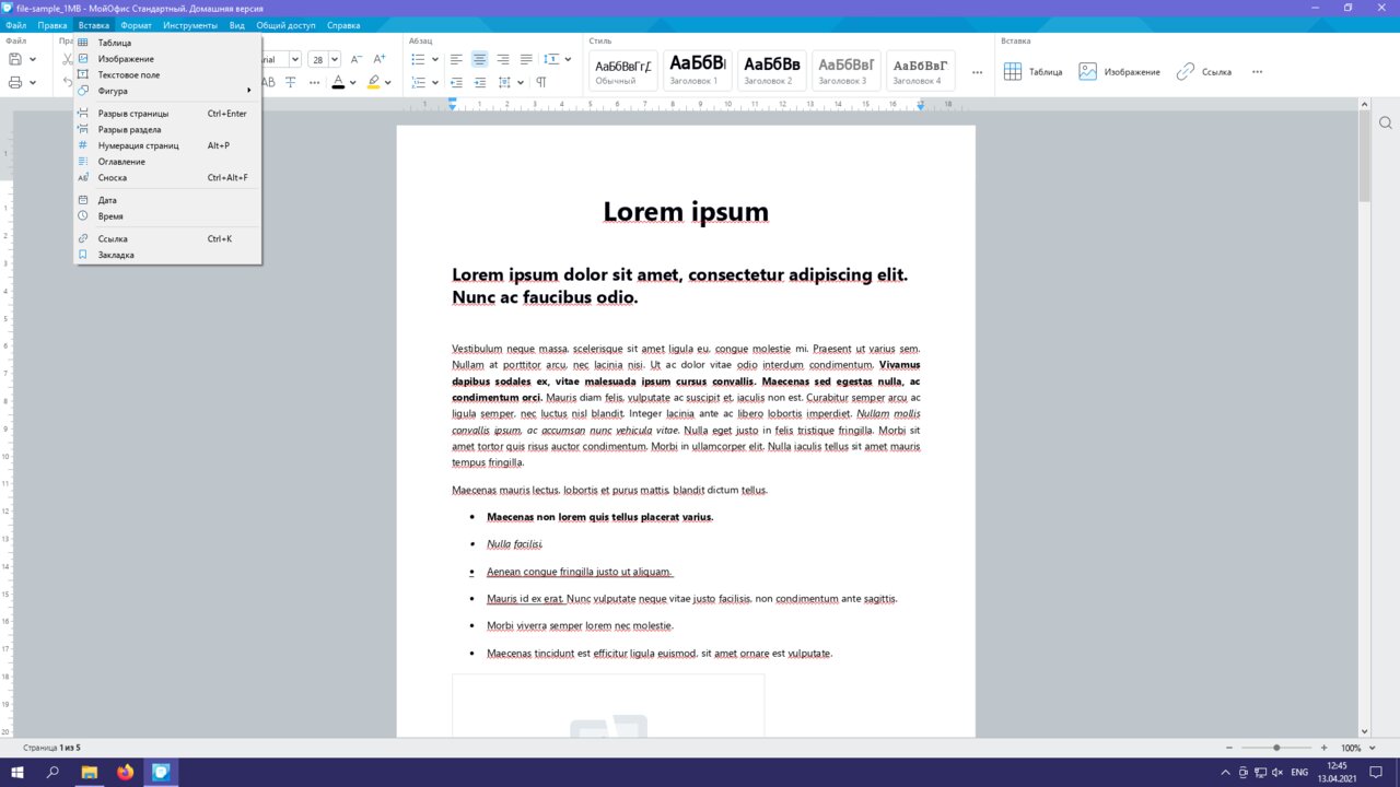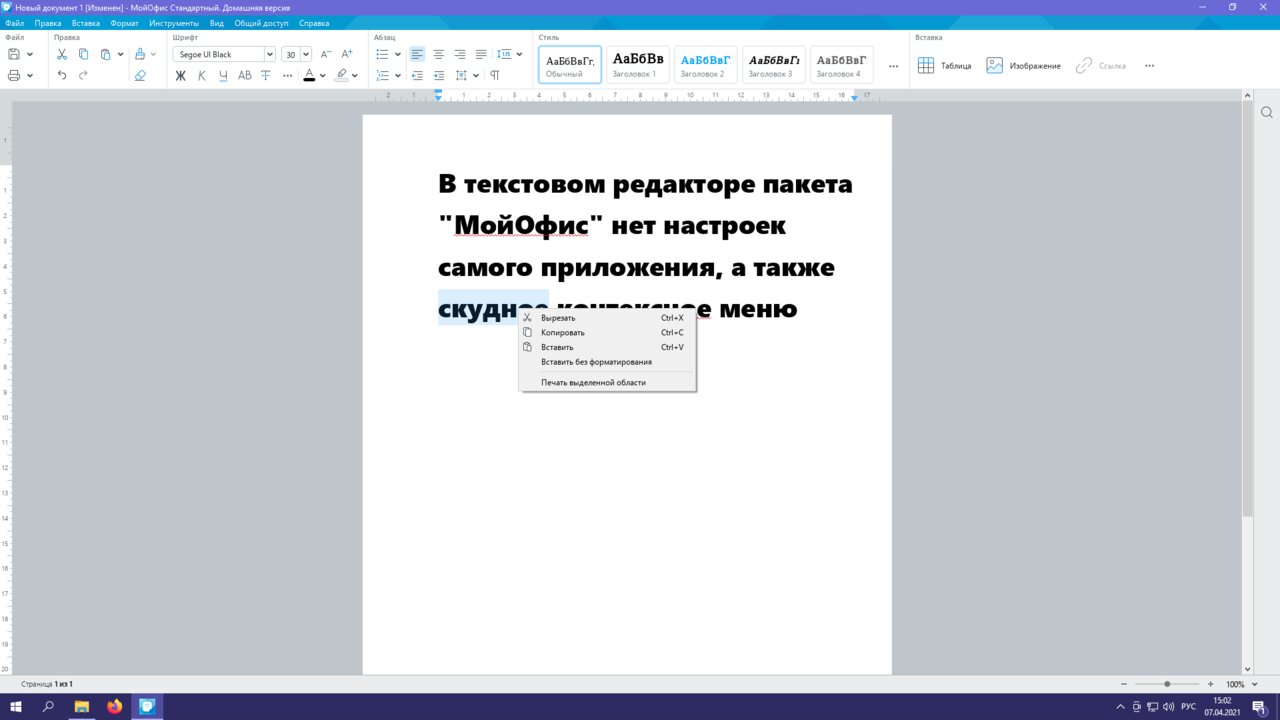 Контексное меню обоих программ скудное, почти все нужные функции приходится искать в верхней панели. «МойОфис» предлагает взамен меню быстрого доступа, которое вызывается сочетанием клавиш Ctrl + /.